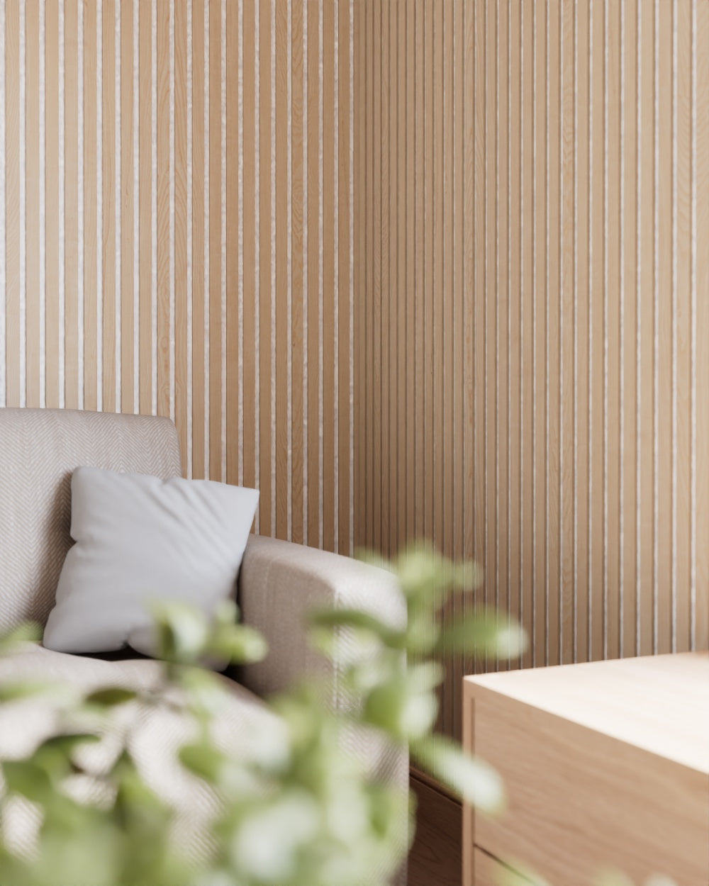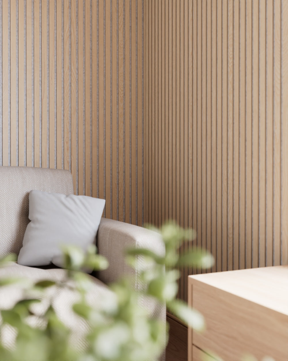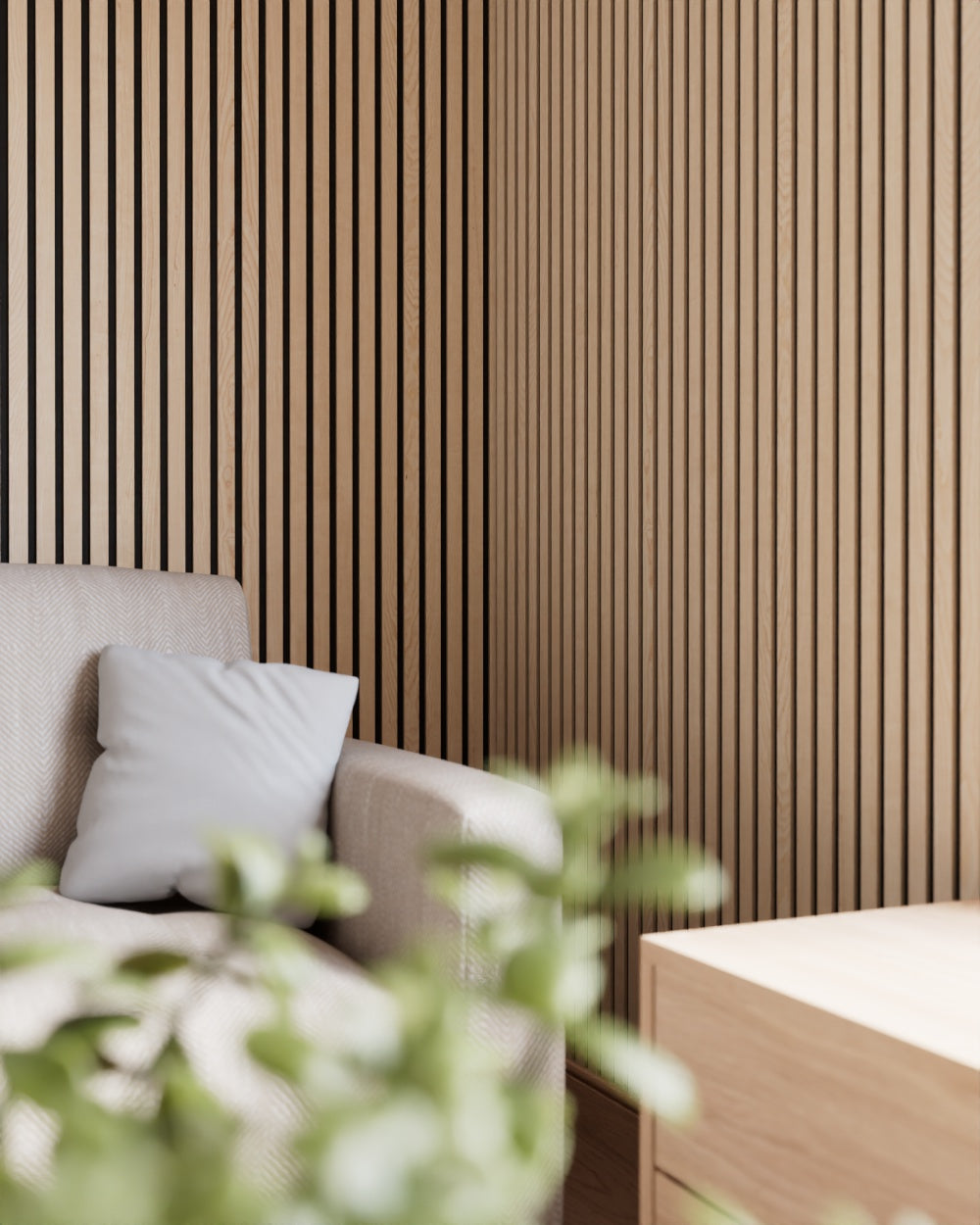 Die Akustikpaneele sind in verschiedenen Filzfarben erhältlich, sodass du das Design perfekt auf deinen individuellen Wohnstil abstimmen kannst. Ob dezent oder markant – die filigranen Lamellen sorgen für ein harmonisches Zusammenspiel aus natürlicher Schönheit und eleganter Linienführung.