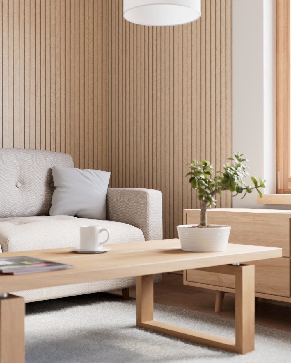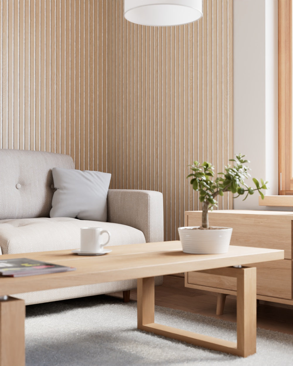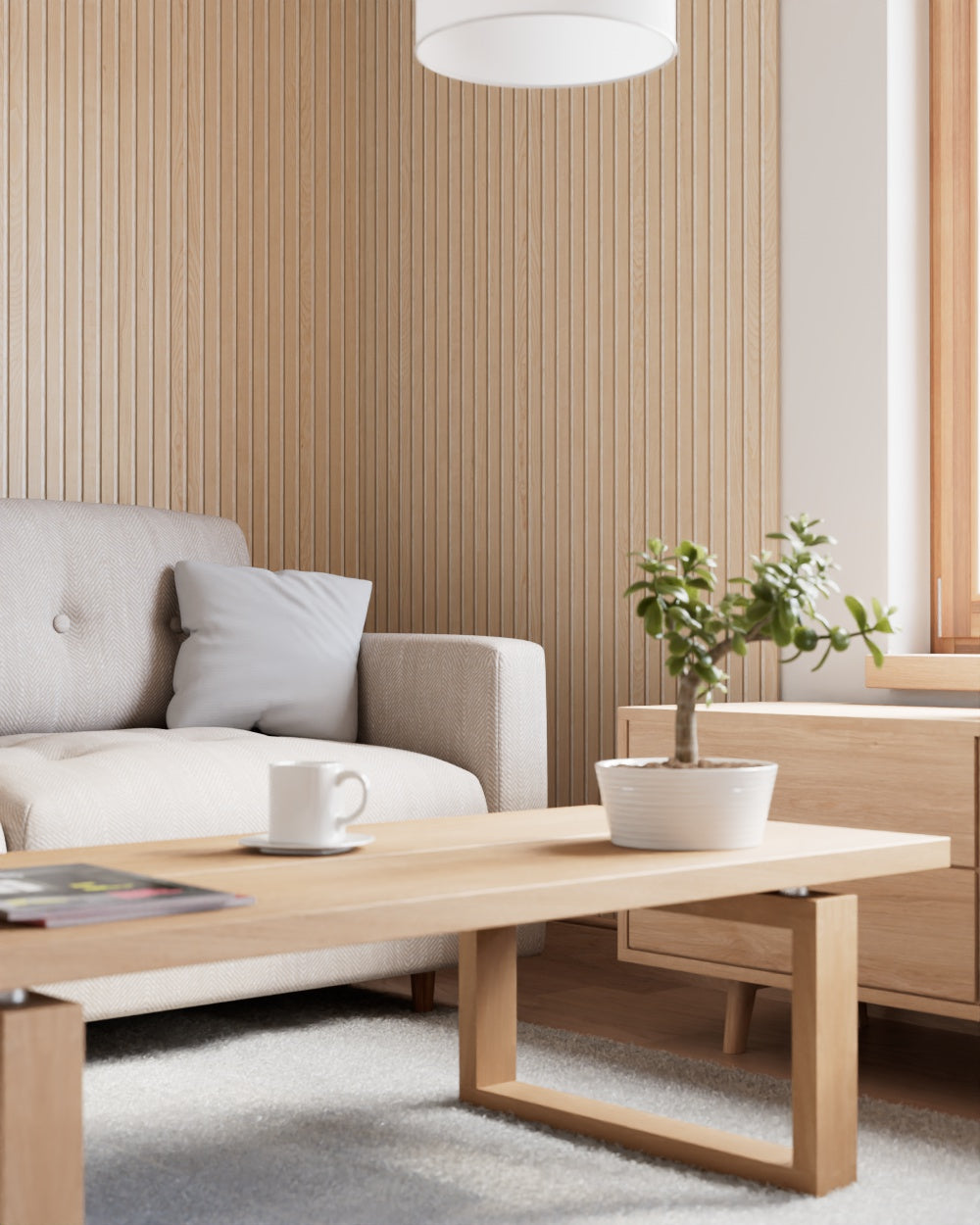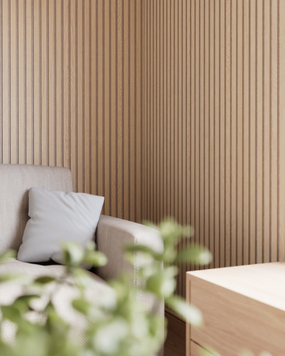 Die Akustikpaneele sind in verschiedenen Filzfarben erhältlich, sodass du das Design perfekt auf deinen individuellen Wohnstil abstimmen kannst. Ob dezent oder markant – die filigranen Lamellen sorgen für ein harmonisches Zusammenspiel aus natürlicher Schönheit und eleganter Linienführung.