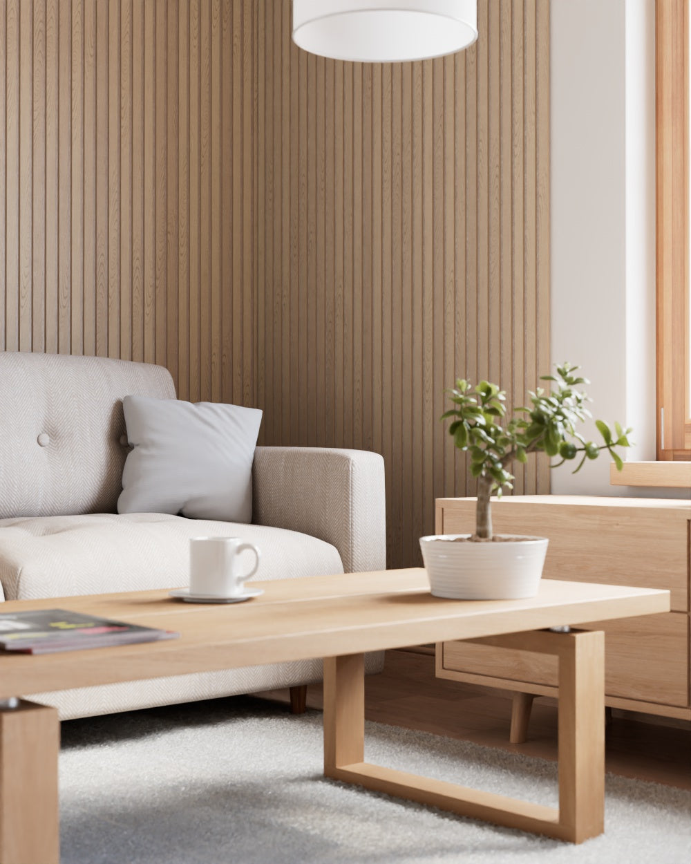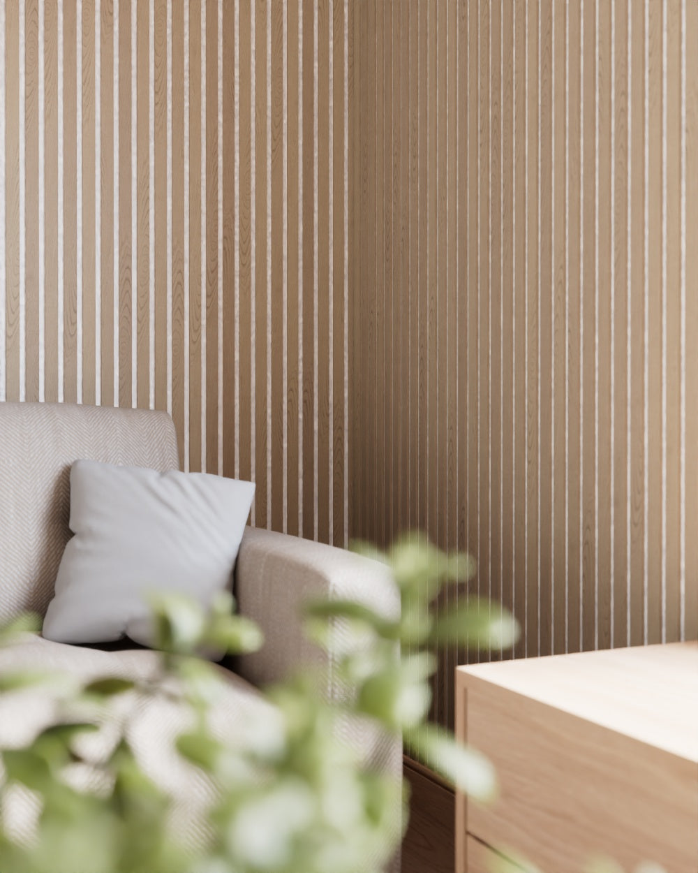 Wer sich einen farbenfrohen aber natürlichen Look Zuhause wünscht, ist mit Akustikpaneelen aus unseren durchgefärbten Holzfaserplatten genau richtig.