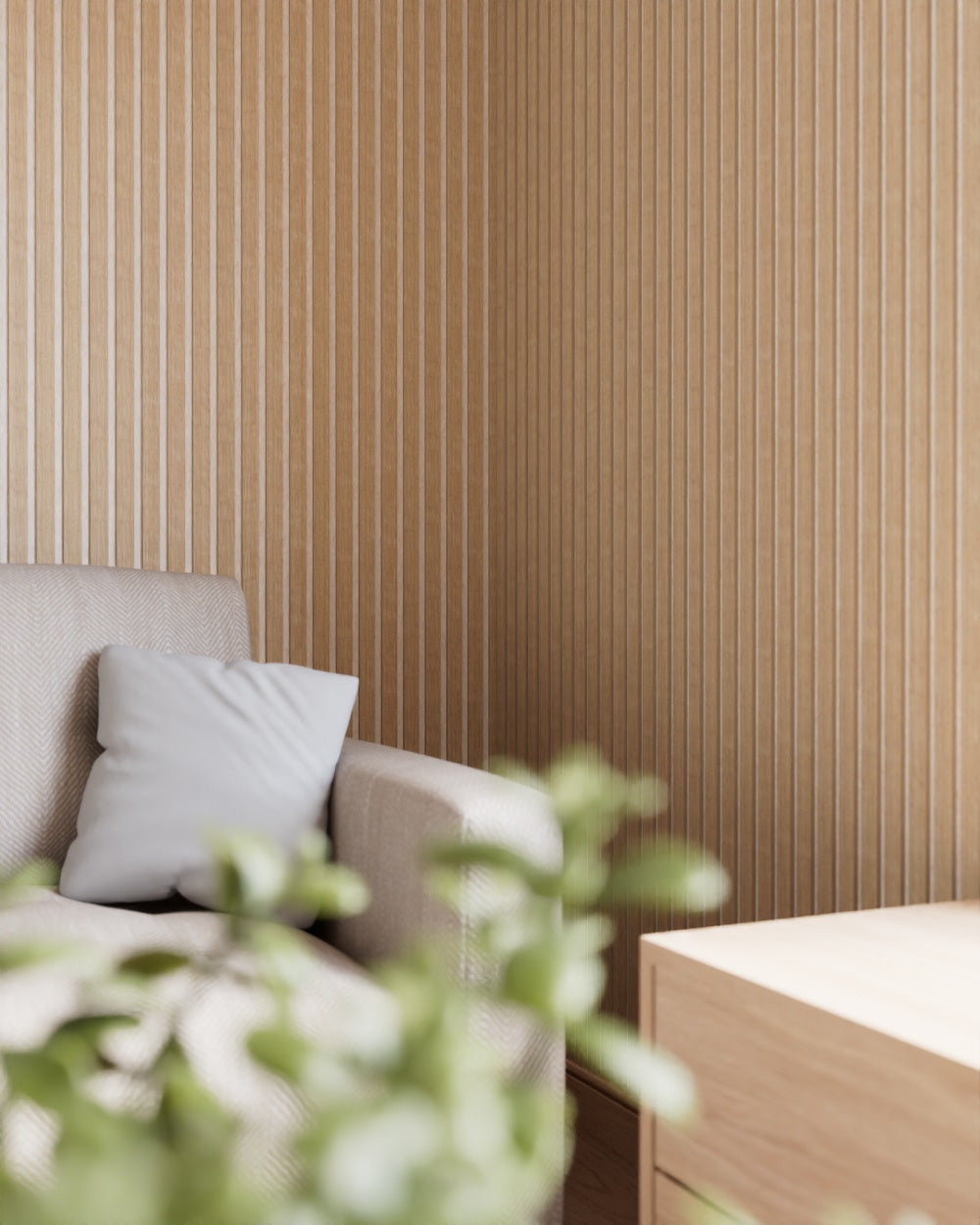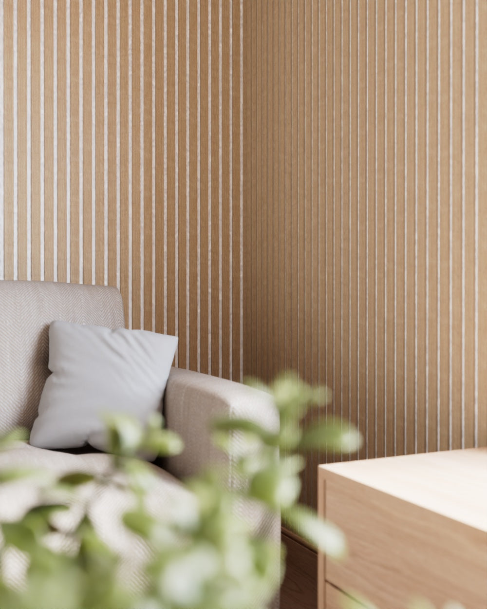 Unsere Serie Holzig bestehet aus Echtholzfurnier einem dünnen Blatt echten Holzes, das von einem Baumstamm geschnitten wird. Das bedeutet, dass jedes Paneel einzigartig ist, da die natürliche Maserung und Farbe des Holzes nie genau gleich sind. Mit Echtholzfurnier holst du dir also ein echtes Stück Natur ins Haus. Der Vorteil? Jedes Paneel hat seinen ganz eigenen Charakter und strahlt die warme, unverwechselbare Optik von echtem Holz aus.