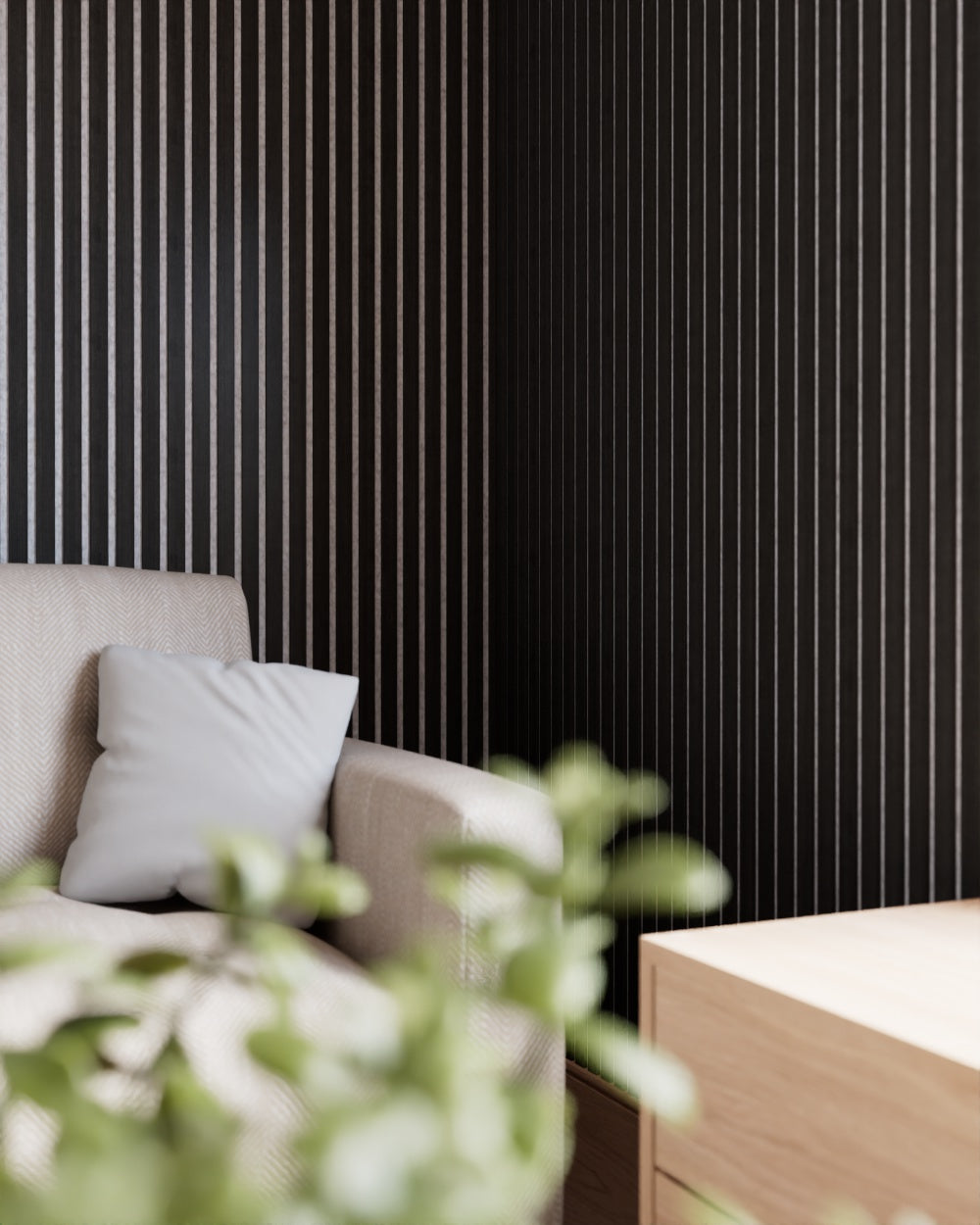 Unsere Akustik Paneele Leicht bestehen hingegen aus Technischem Furnier welches aus verschiedenen Holzarten zusammengesetzt und dann gefärbt oder so verarbeitet, dass es eine einheitliche Maserung und Farbe hat. Das sorgt für eine gleichmäßige Optik, die sich perfekt für moderne und minimalistische Designs eignet. Der Vorteil hier: Du erhältst eine gleichbleibende Qualität und Optik, ohne Überraschungen in Farbe oder Maserung.