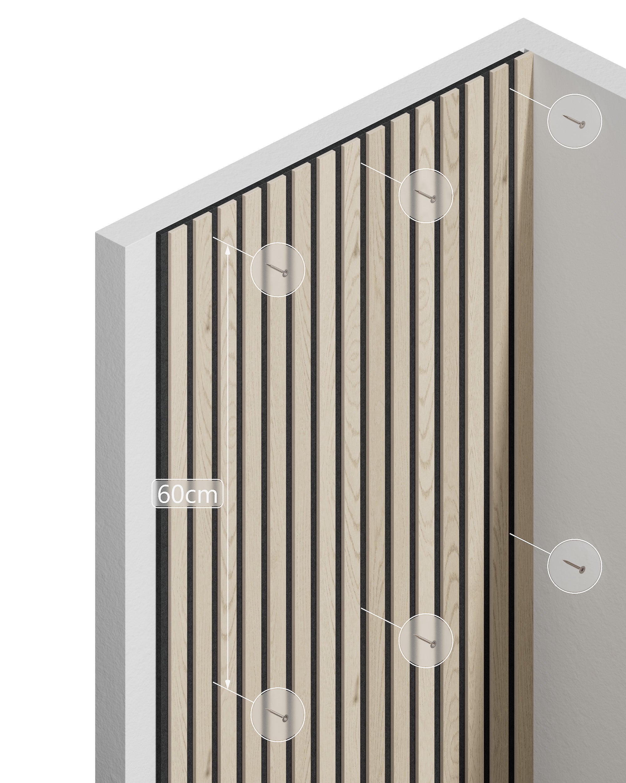 Het akoestische paneel wordt direct aan de wand of het plafond gemonteerd met behulp van een