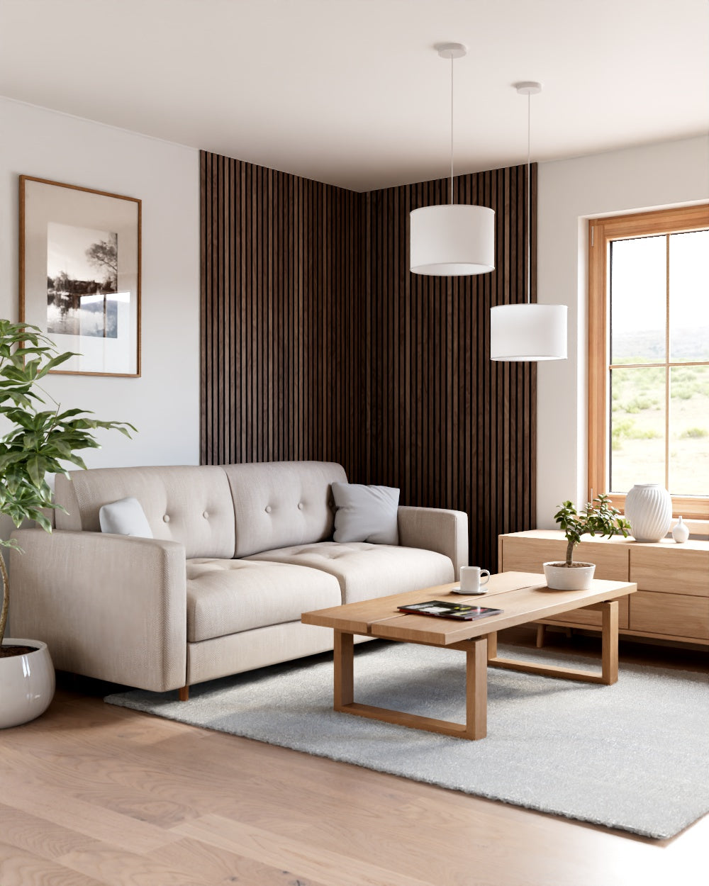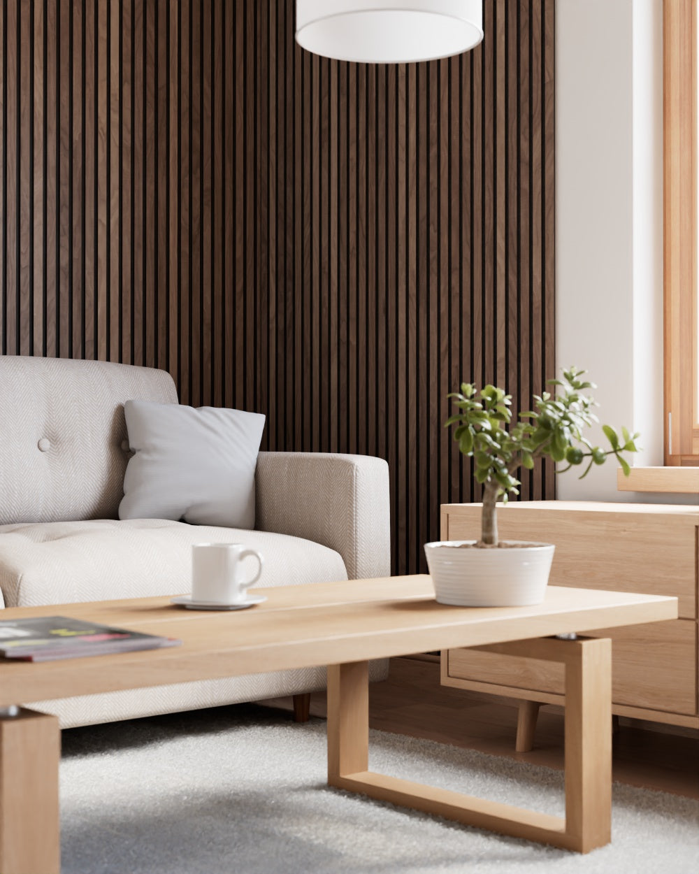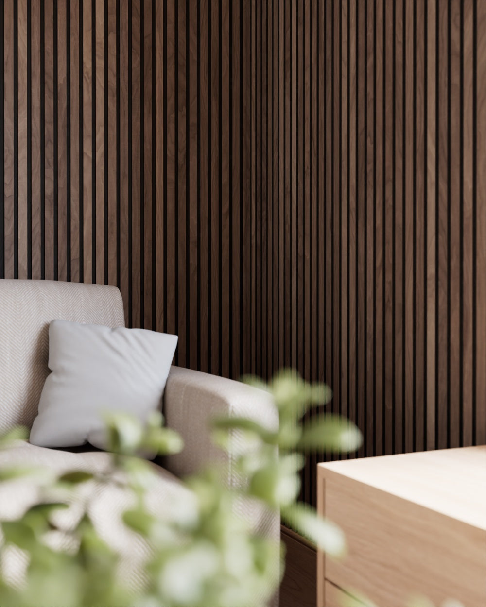 Die Akustikpaneele sind in verschiedenen Filzfarben erhältlich, sodass du das Design perfekt auf deinen individuellen Wohnstil abstimmen kannst. Ob dezent oder markant – die filigranen Lamellen sorgen für ein harmonisches Zusammenspiel aus natürlicher Schönheit und eleganter Linienführung.